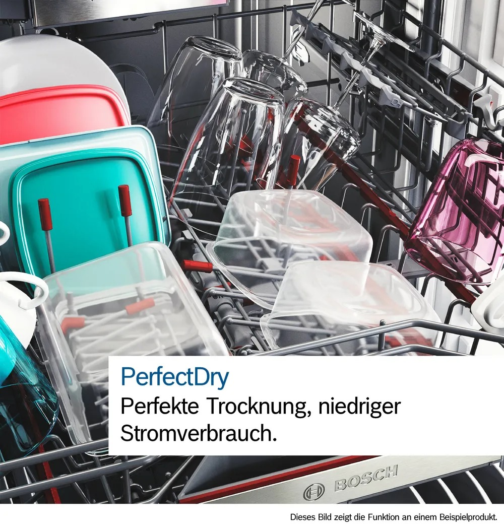 Bát đĩa chưa được làm khô hoàn toàn hoặc còn quá nóng? Với EfficientDry, đó là lịch sử. Máy rửa bát âm tủ Bosch SMD8TCX04E Series 8 được bổ sung thêm tính năng tự động mở cửa khi chương trình kết thúc. Điều này giúp cải thiện quá tình làm khô, ngăn ngừa sự hình thành nước ngưng tụ đồng thời bát đĩa của bạn được thoáng mát, khô ráo hoàn toàn. Vì vậy, bạn có thể cho ngay bát đĩa vào tủ mà không cần làm khô thêm lần nào nữa. Điều này không chỉ tiện lợi mà còn tiết kiệm năng lượng.